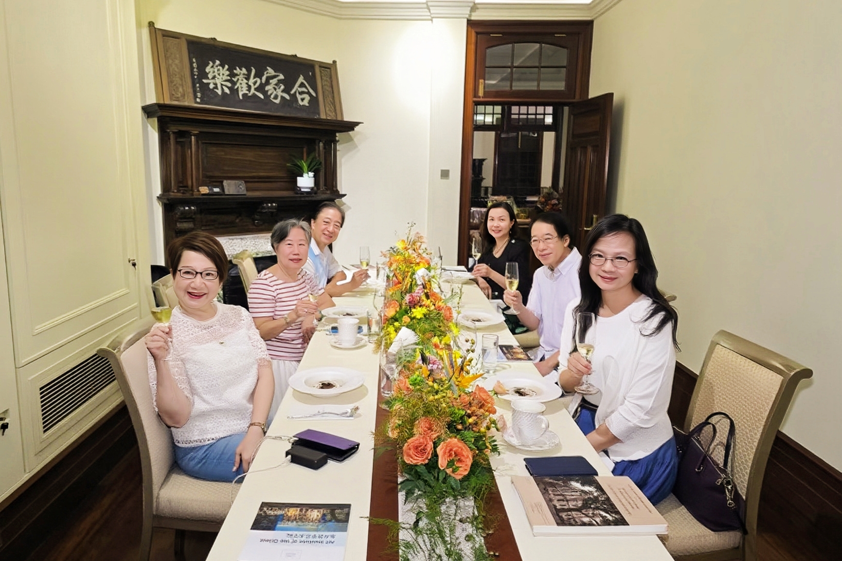 On the evening of 16 September 2025, the Art institute of the Orient (AIO) was honored to host esteemed guests, including Mr. Cheung Man Sun, former Assistant Director of Broadcasting at Radio Television Hong Kong (RTHK) and Ms. Candy Chea Shuk Mui, as well as Mr. Wai Yin, the Father of Hong Kong Children’s Songs, and his spouse. Ms. Dorothy Wong, the Chairman of AIO, warmly welcomed the guests, escorting them on a tour of the historic building and hosting a refined dinner filled with artistic ambiance.